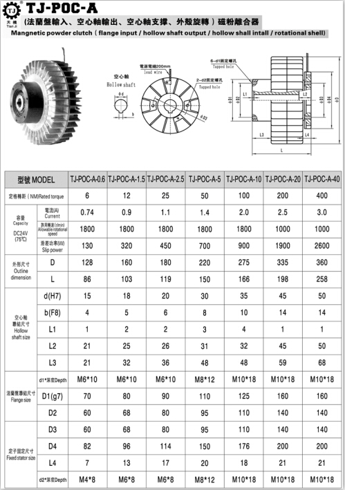 外旋轉(zhuǎn)磁粉離合器的接線很簡(jiǎn)略的;便是只有2條線;接DC24V的直流電源(0.4A可調(diào))。